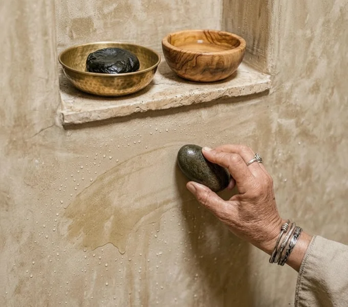 - Alle paar Monate: Ein Hauch Olivenöl oder spezielles Tadelakt-Pflegeöl einmassieren, um den Glanz zu erhalten